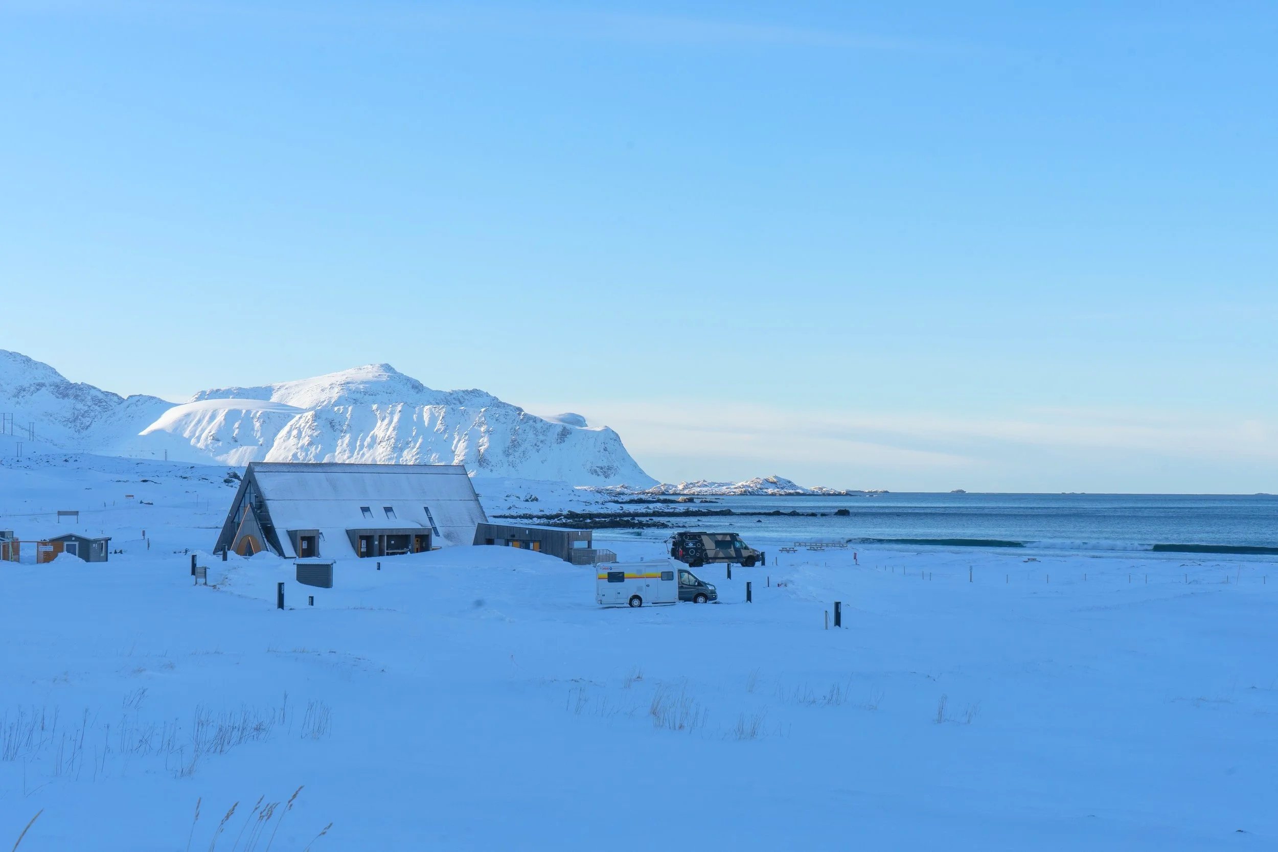 Welcome to winter camping at Lofoten Beach Camp! We are opening earlier every year with good reasons. Winter camping is getting more popular and we are happy to offer you camping spots with electricity right by our own beach. Our campsite is the perfect place to enjoy the northern lights because of our very low light pollution. Surrounded by spectacular peaky mountains, situated in the middle of western Lofoten, making us a perfect base for exploring Lofoten’s main attractions. Short drives from the camp will allow you to explore Ryten/Kvalvika, Reine/Å, Reinebringen, Nusfjord and a broad selection of other sights. (Be careful and check out hiking recommendations off season).